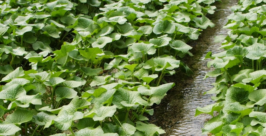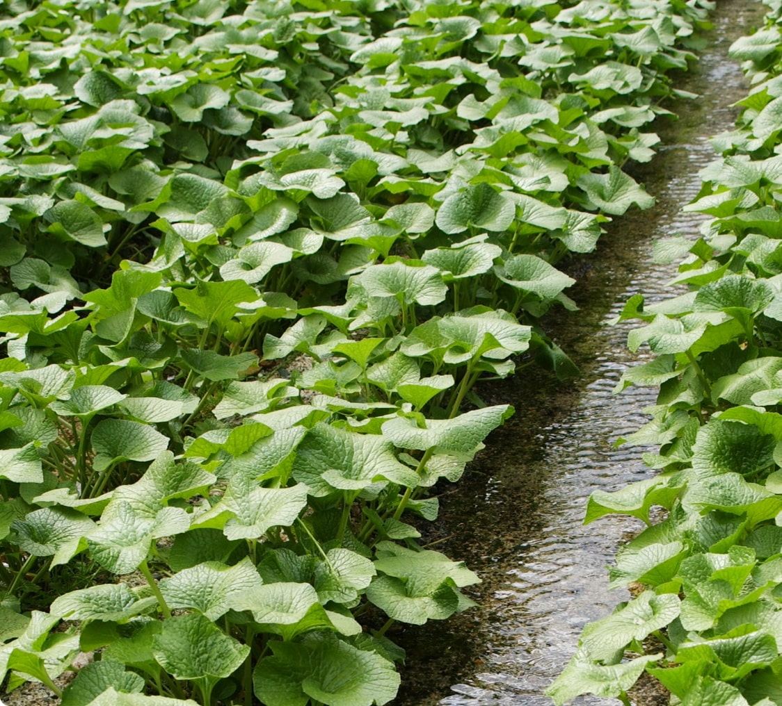 本芥末属十字花科、山萮菜属,是原产于日本的多年生草本植物。其种植方法分为"泽芥末"和"田芥末"两种,前者将本芥末种植于山泉水或流淌的清澈溪流中,后者则种植于潮湿凉爽的土地里,这两种芥末在植物分类上是一样的。泽芥末的最适宜种植温度为12℃至13℃,即使在夏季,也最好在16°C以下,而且需要清澈而丰富的水源,所以只能在日本少数地区种植。 -